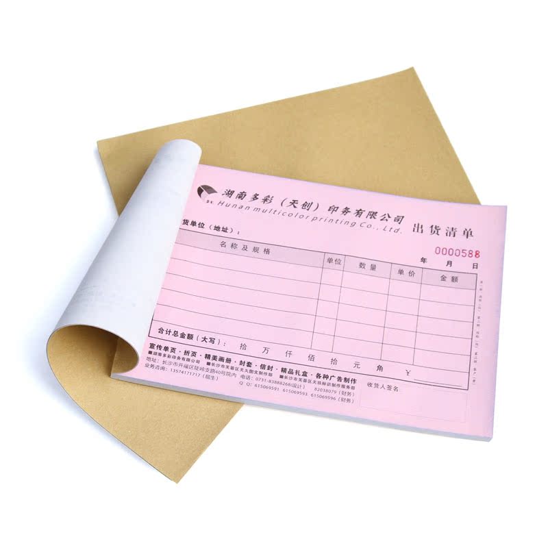 Changsha two, three, four, carbon-free copy receipt, custom printing, free design, minimum order of 50 copies