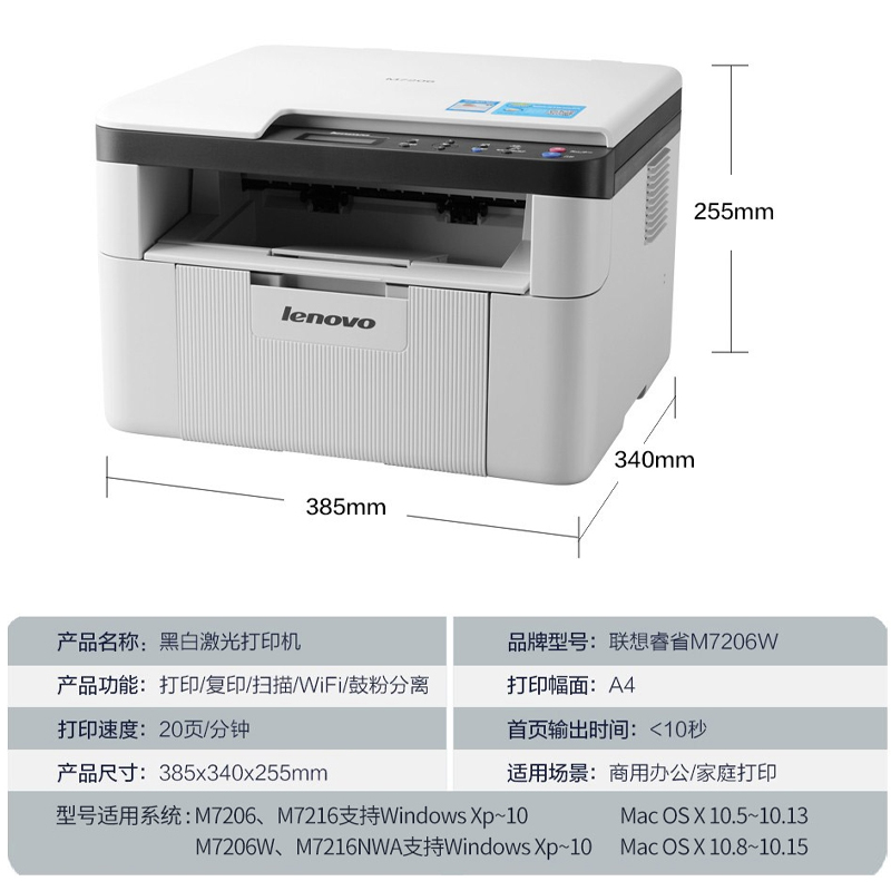 Lenovo M7206W Wireless Laser Printer Copy All-in-one Scan Home Small Office Special Commercial Black and White Copy Mobile WiFi Three-in-One A4 Student Homework M1688W