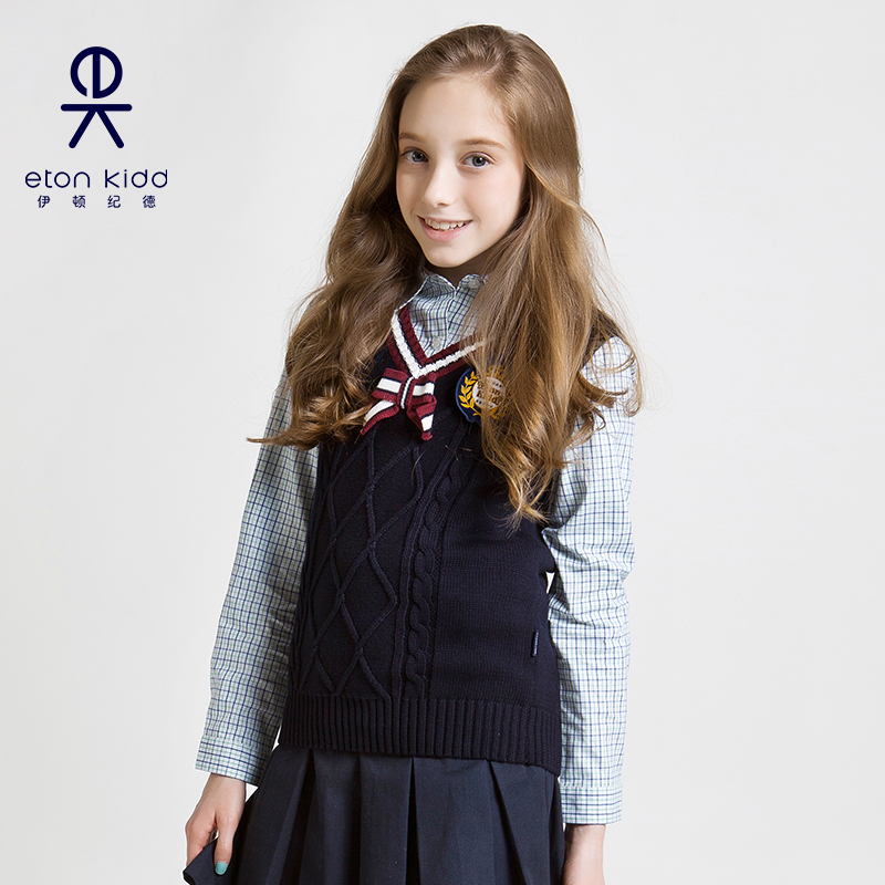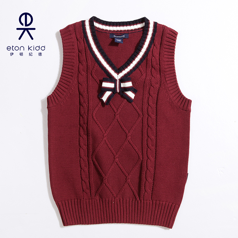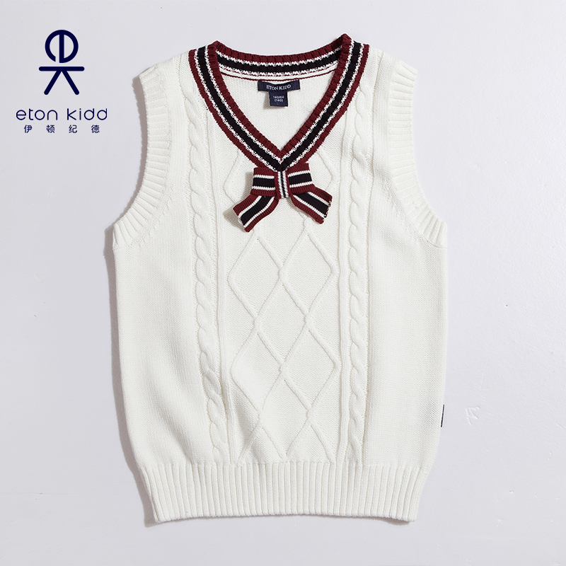 Eaton Guild school uniforms girls knit vest girl pupils Fashion butterfly knot V collar waistcoat 15B208