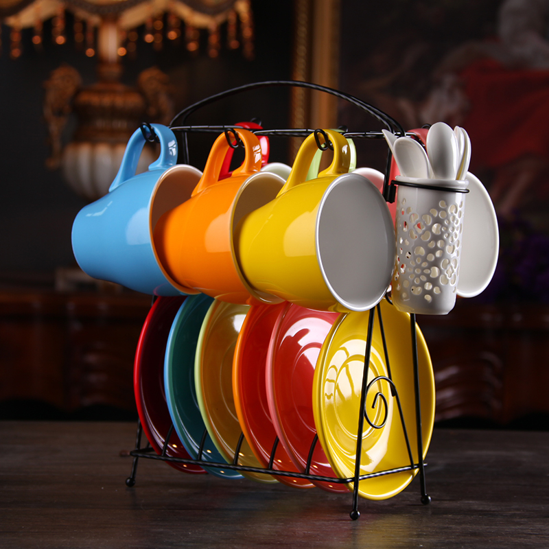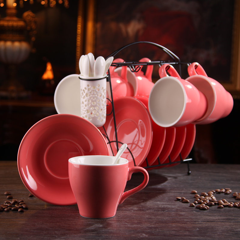 Professional Cappuccinola Flower Coffee Cup 6 Piece Set Creative Color ceramic high capacity coffee cup set spoon
