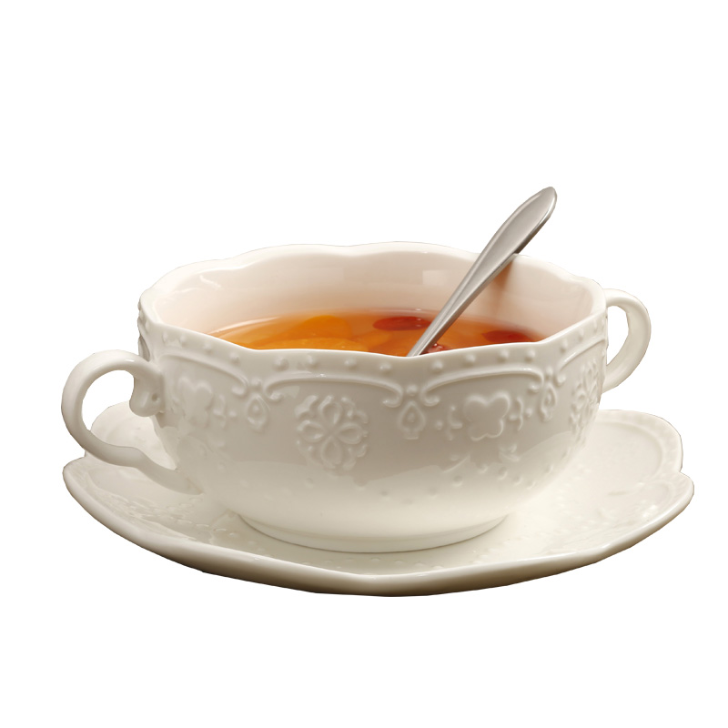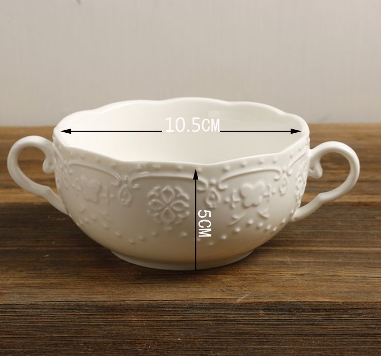Eurostyle Relief Butterfly Flowers Ceramic Binaural Bowl Western Meal Dessert Soup Sweets Bowl of Ceramic Milk Soup Bowl