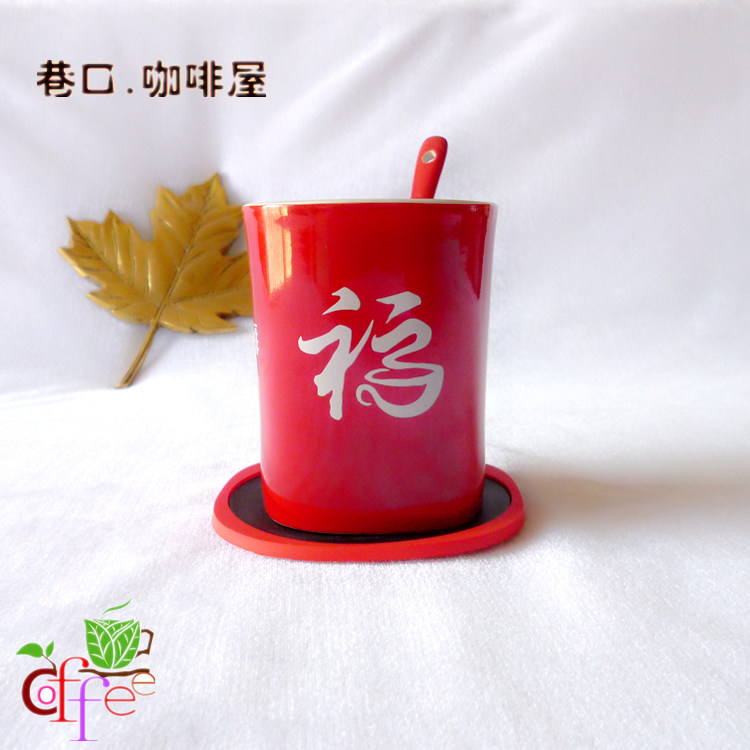 Fu Character Cup Matching Spoon Cushion Fu Character Cup Single Cup Fufu Character Cup Matching Spoon Fu Character Cup Matching Cushion
