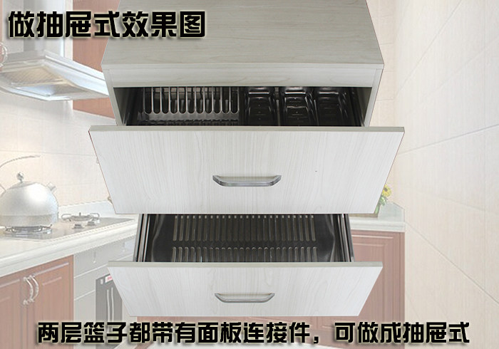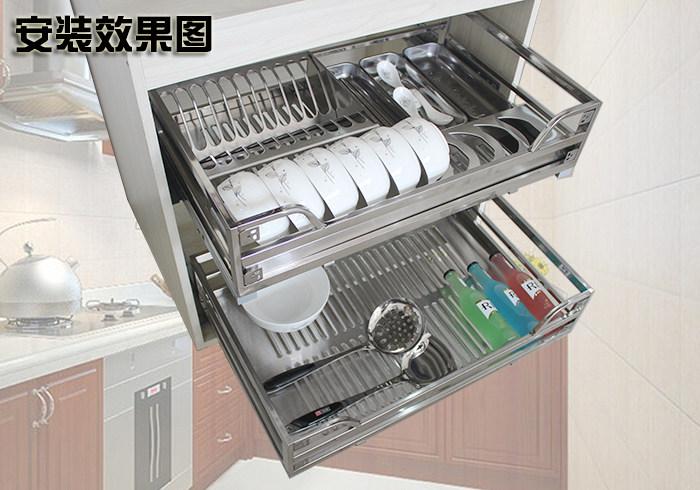 Stainless steel square tube pull basket Kitchen overall cabinet pull blue Lan Lan bar seasoning double-layer dishes and dishes Drawer rack damping rail