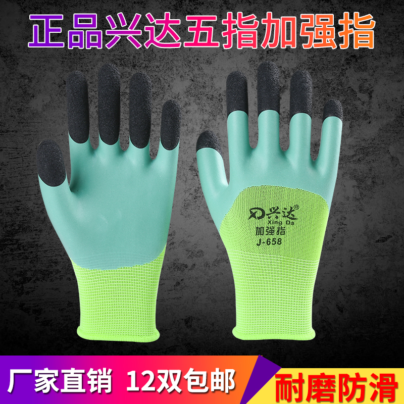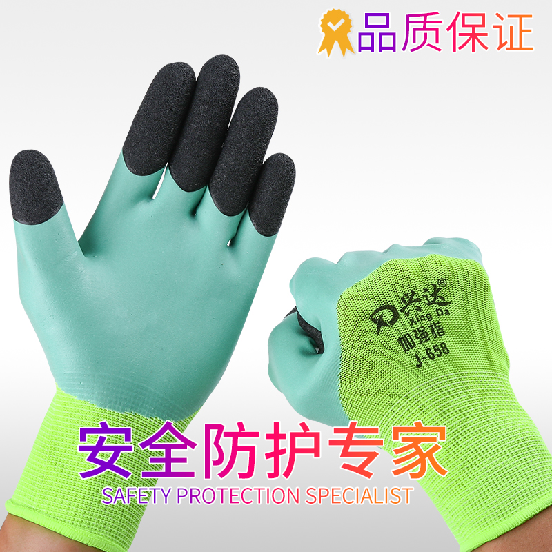 Gloves Labor Protection Wear Resistant Gum Plastic Gluing with rubber Xingda foaming Wang latex anti-slip working protection strengthening finger