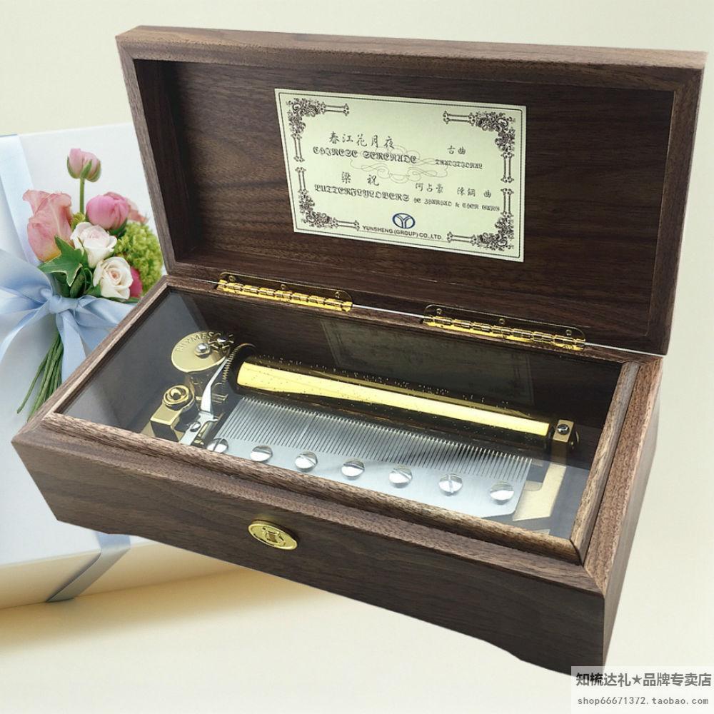 The 78-tone walnut wooden music box cannon music box sky city lettering girl gift valentine's day