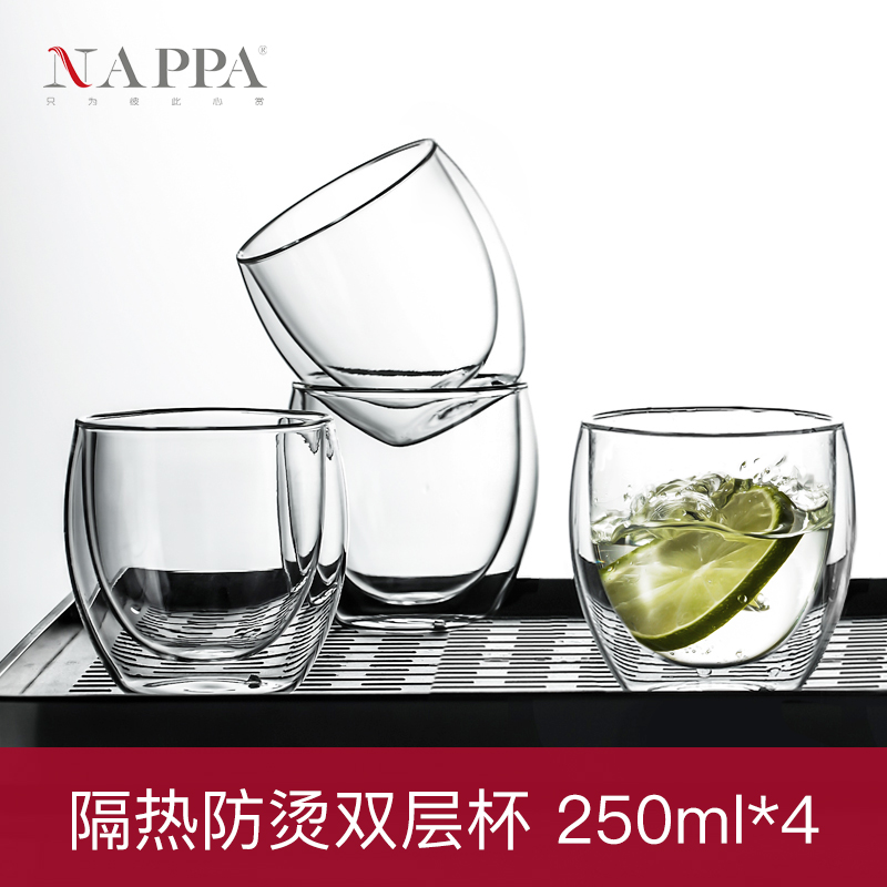 NAPPA double-layer water cup Transparent set glass Heat-resistant teacup Milk cup Household round office juice cup