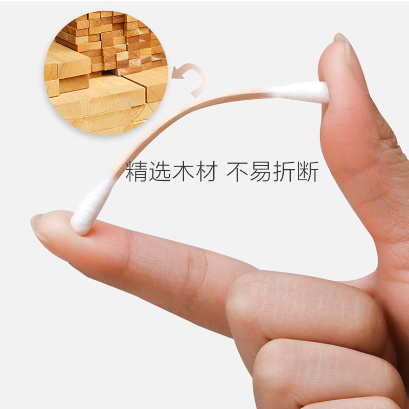 Cotton swab household bag strong wooden stick double-headed cotton swab makeup kapok stick baby with ear cleaning cotton stick