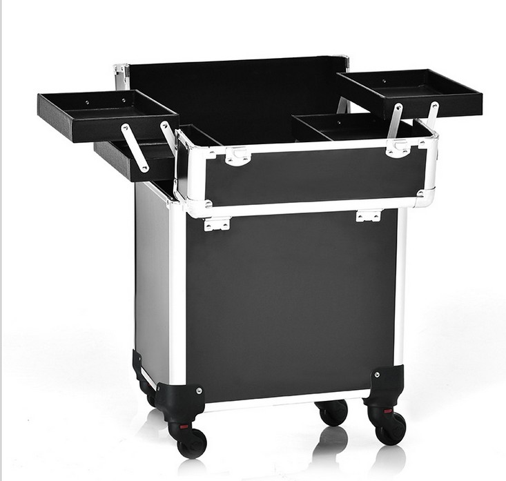 Aluminum alloy large-capacity trolley makeup box beauty salon and makeup box universal wheel can put curling rod makeup box
