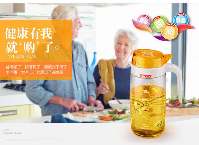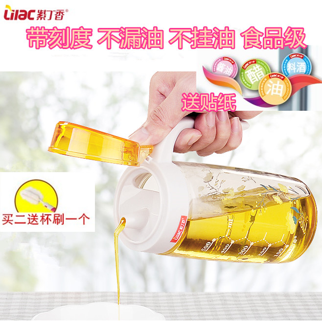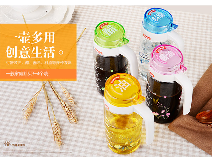 Lilac Glass Oil Pot Thickened Anti-Leak Control Oil Pot Soy Sauce Bottle Vinegar Bottle Vinegar Bottle Seasoned Bottle Sending Stickers