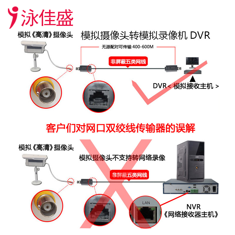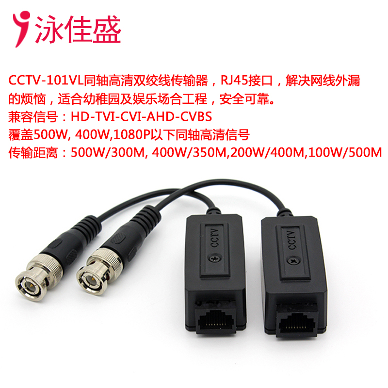 Coaxial video transmitter BNC to RJ45 network interface wiring passive monitoring dedicated twisted pair video balun
