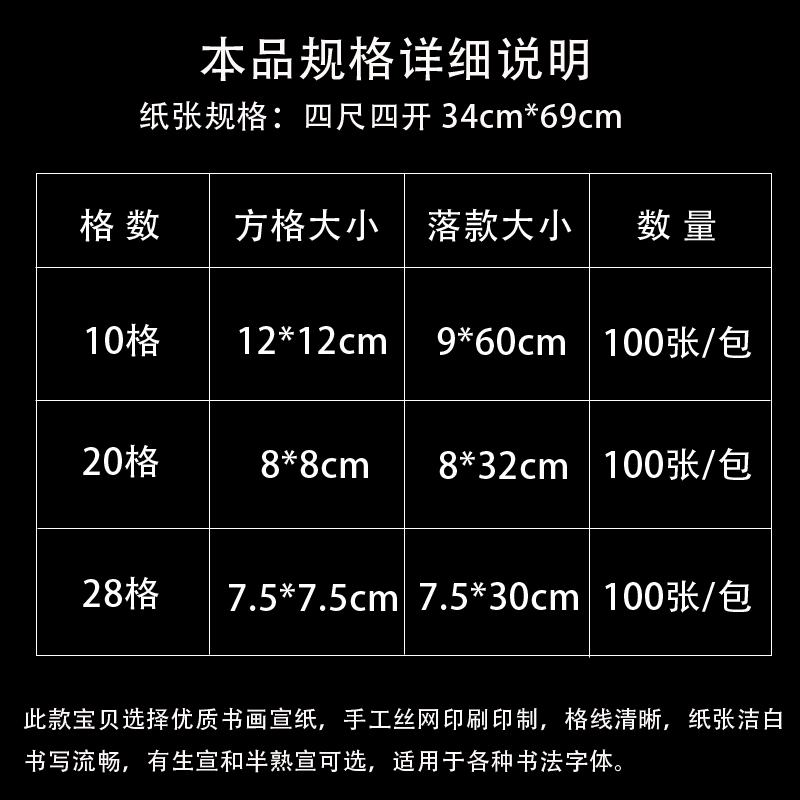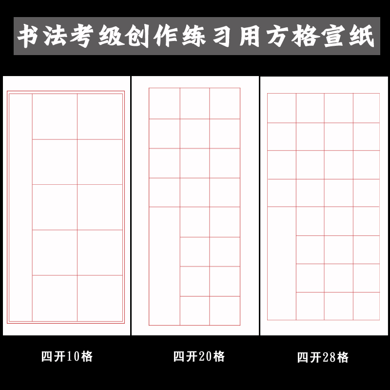 Anhui star rice paper four feet four open 10 grid 20 grid 28 grid half-baked half-cooked Xuan square grid calligraphy practice creation special examination grading examination special raw rice paper