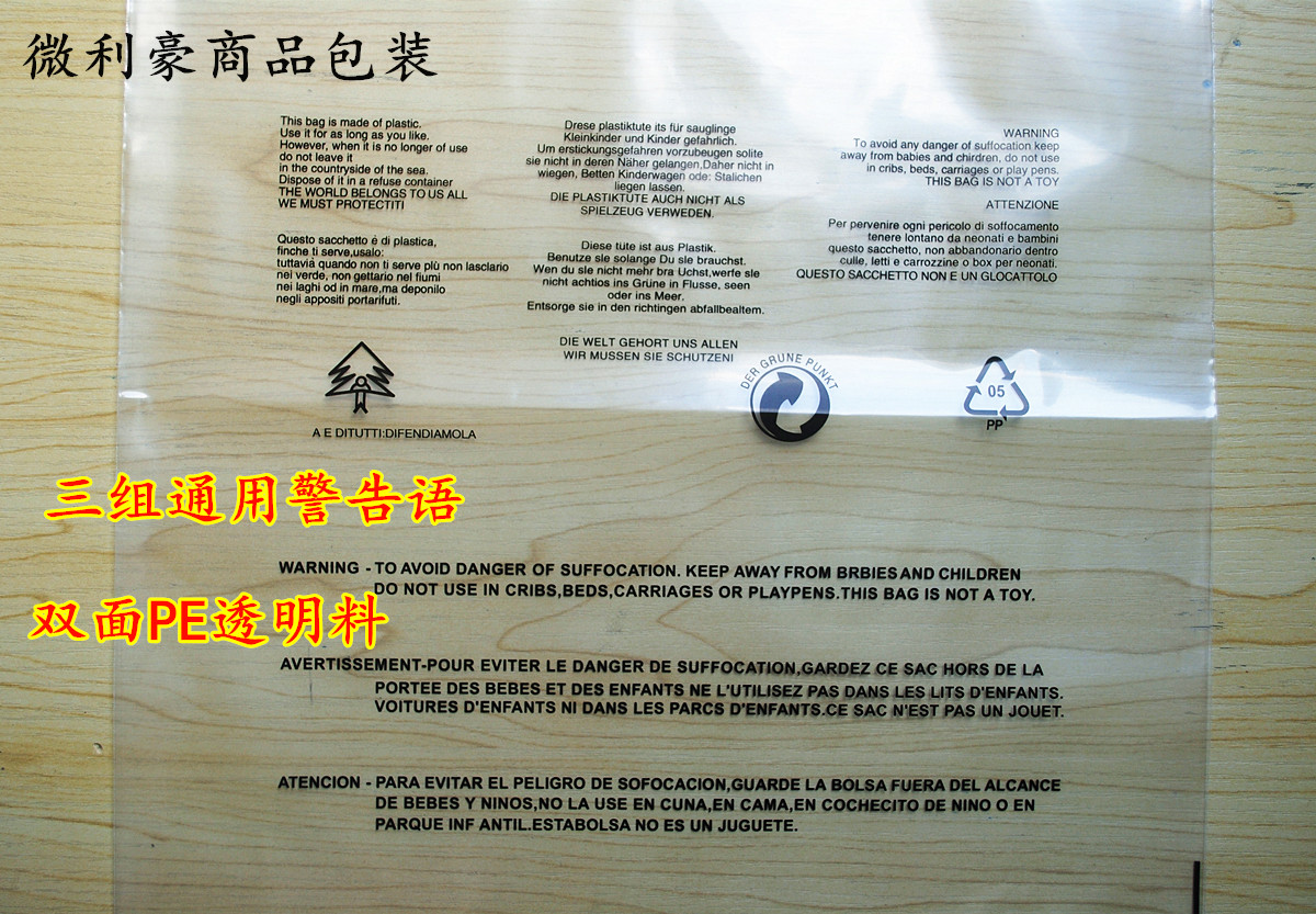 PE self-adhesive bag Transparent packaging bag printed with warning language Clothing packaging bag 10 silk 45*60cm printed bag