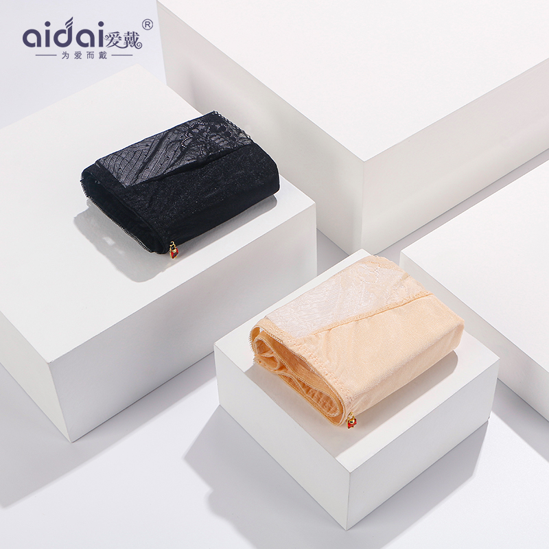 Love Wear Lady No Marks Comfort Flat Corner Safety Pants Mid-Waist Closets Hip Sexy Lace Mesh Veil Black Panties