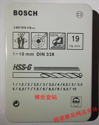 Bosch straight shank twist drill HSS-G full-series high speed mesh twist drill bit cover drill 1-10MM 19 pieces