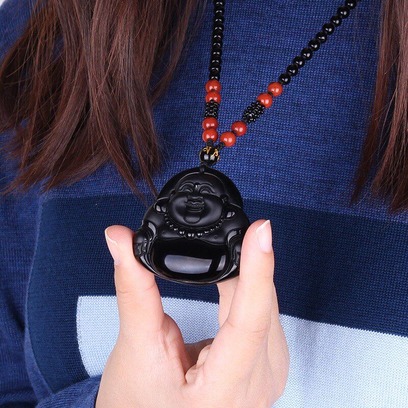 Natural obsidian Mailoh Head Frost Buddha Like Big Belly Buddha Little Buddha Lifted Laughter Buddha Hanging Life Year