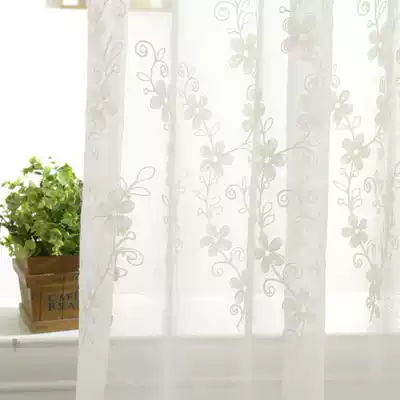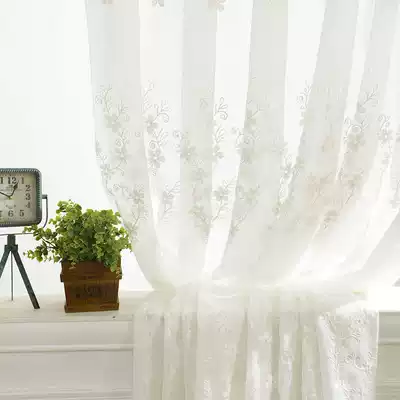 Pastoral bedroom living room embroidered gauze cotton and linen white gauze white sand Roman curtain finished white gauze curtains