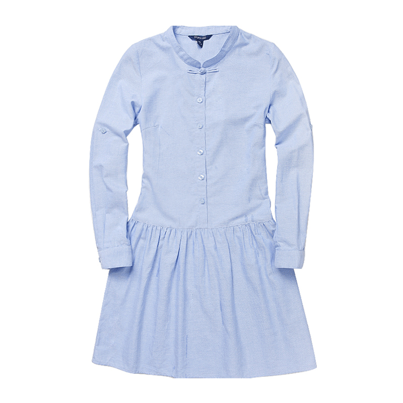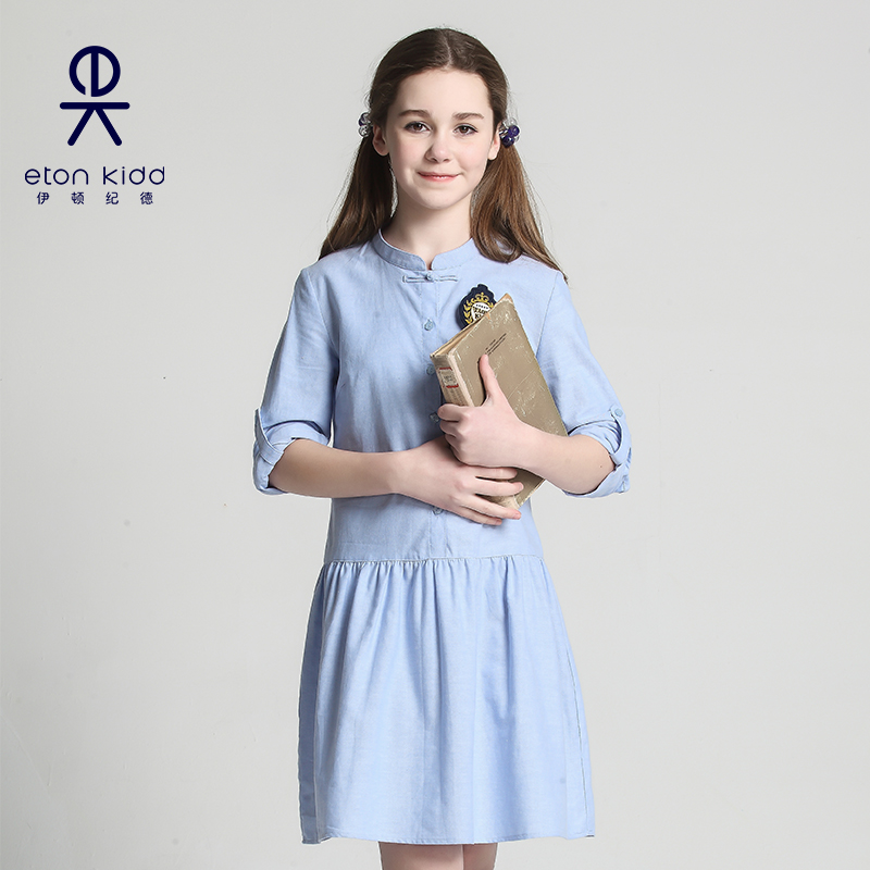 Eaton Kidd School uniform girls dress Big children long sleeve stand collar cotton light blue skirt 15L276