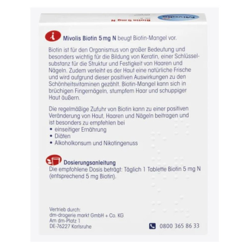 dm German Mivolis Biotin Hair Care Capsules Anti-White Hair Loss Hair Beauty Nail Art 60 Capsules 2 Months Volume