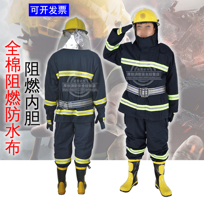 Hongxing 02 firefighter firefighting protective clothing five-piece set navy blue heat-insulating clothing with cotton waterproof fire-fighting clothing