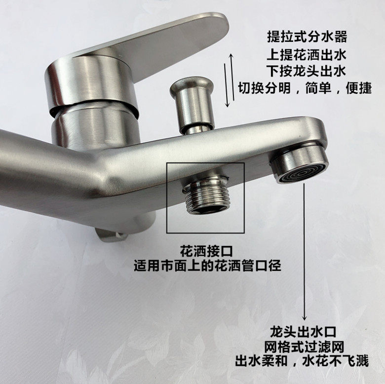 304 stainless steel shower faucet hot and cold bathtub faucet into the wall bathroom mixing valve concealed bath faucet