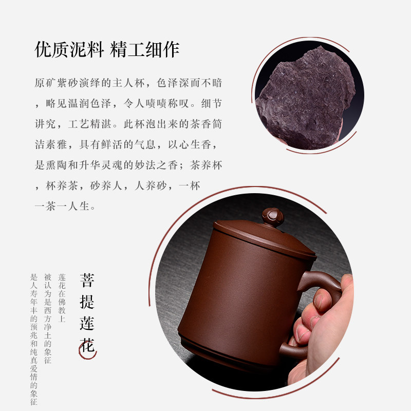 Hongzhong "Masterpieces" Yixing Purple Sand Lid Cup Handmade Purple Sand Bodhi Lotus Office Teacup Gift