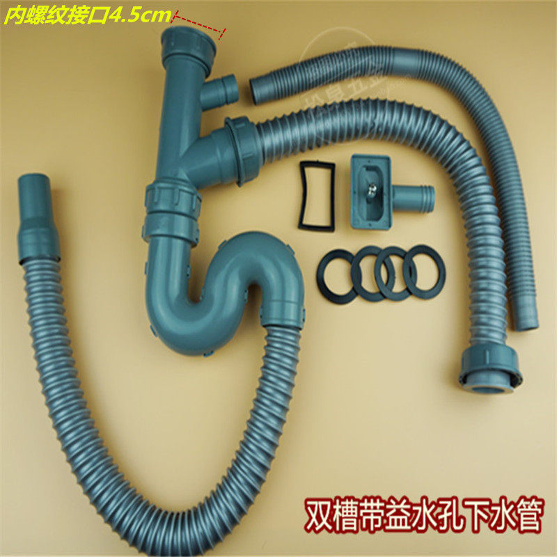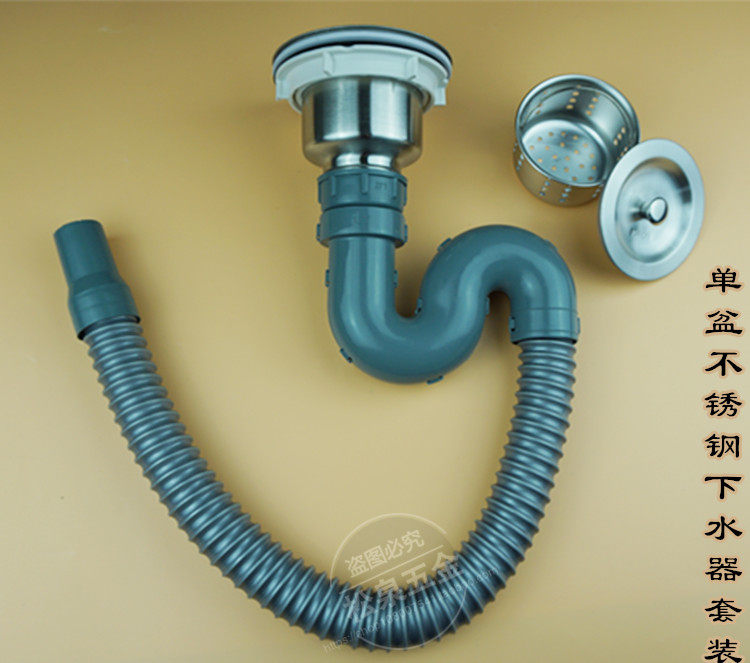 Kitchen Double Trough Washbasin Single Sink Sink S Type Deodorant Wire Lower Water Pipe Wash Vegetable Basin Pool Drain Pipe Stainless Steel Lift Basket