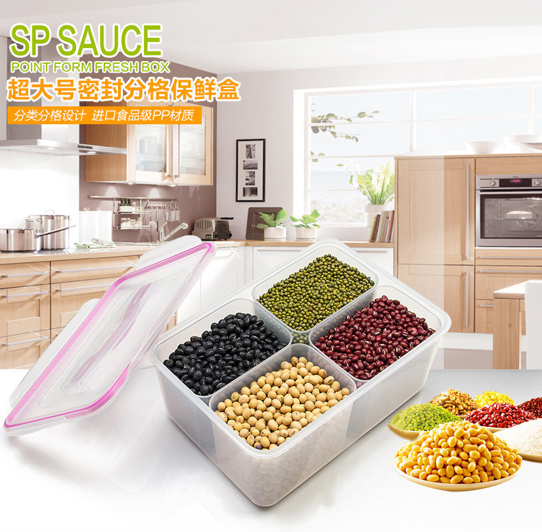 Refreshing Box Plastic Sealed Box Fridge Contained compartment Lunch Box Separated Fruit Lunchbox Rectangular with lid large number
