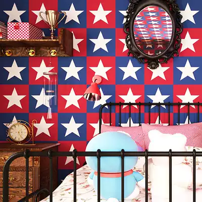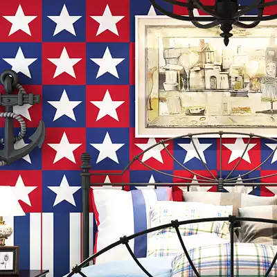 British style Mediterranean children's room AB version five-pointed star star vertical stripe wallpaper boy wallpaper Captain America