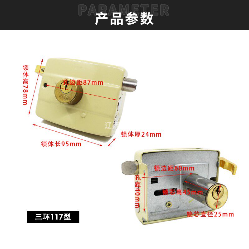 Three-ring brand old 117 type triple tongue insurance door lock large door lock storage wood door lock anti-theft door lock pure copper lock-Taobao