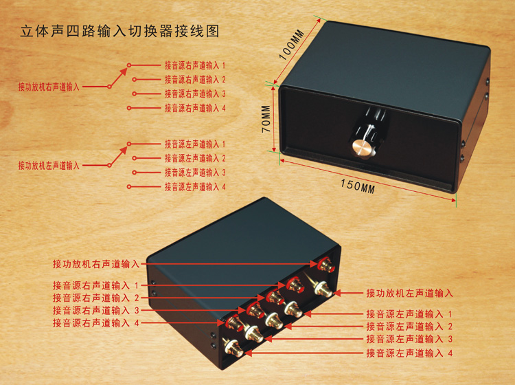 The stereo four-way audio signal input switcher uses a gold-plated RCA socket (four in and one out) equipment PK