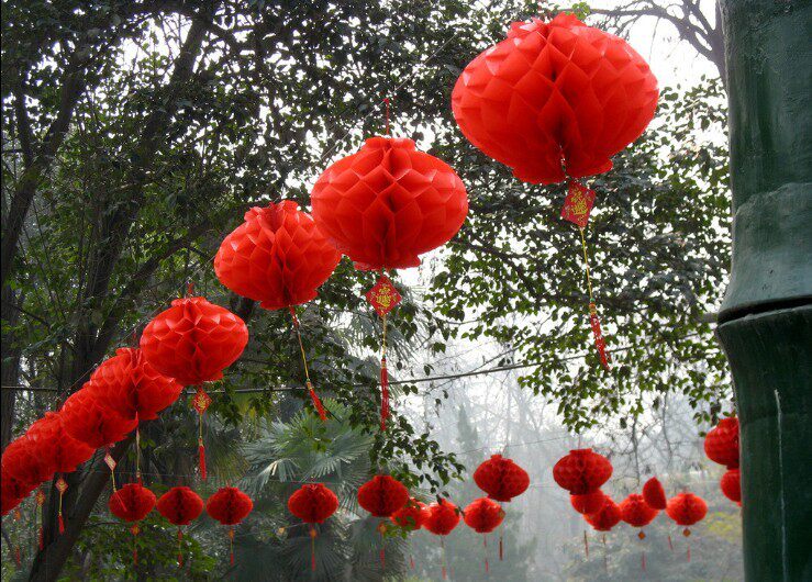 New Year's Day New Year's Day Christmas Light Plastic Small Paper Lantern Red Lantern String Honeycomb Hotel Supermarket Store Festive Decoration