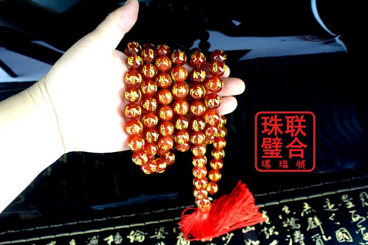 Fuxin Natural Manau 108 Grain Candida Beads Super-long Imperial Palace of the Pearl Laser lettering Six words true to the great nation