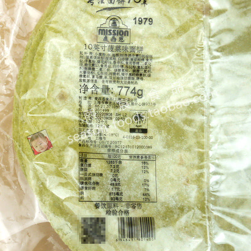 Mission10Spinach Flour Tortilla McSien's share of spinach 10-inch pasta 774g