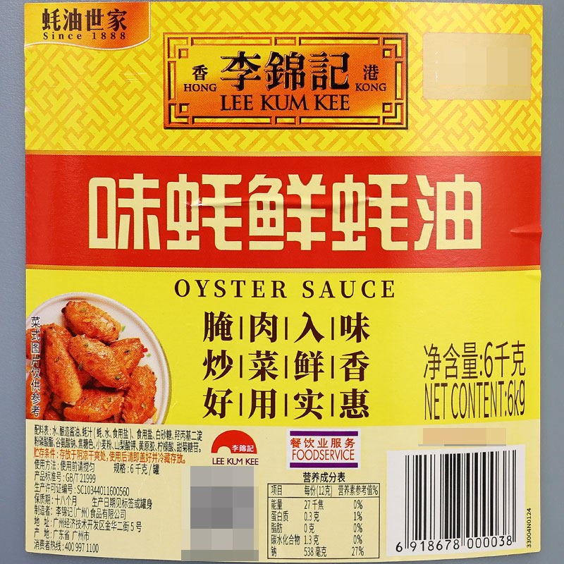 Water brewing soy sauce Oyster Juice Oyster edible salt White Sugar Hydroxyyl Bis Starch Phosphate Valley Ammonia Sodium Caramel Color Wheat Flour Sorbic Acid Potassium Citric acid Chrysanthemum Glycosides is based on the product's outer packaging actual information