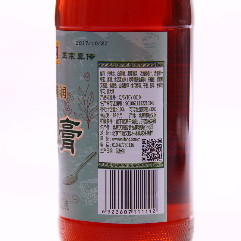Enjitang Qingrun loquat paste 850gX2 bottled old Beijing specialty pear paste sugar brewed beverage autumn pear paste