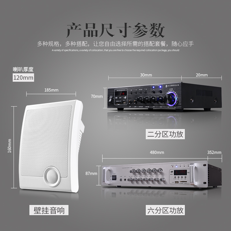 Two wall-mounted acoustics 100W Bluetooth Two-partition power amplifier 3 wall-mounted acoustics 100W Bluetooth Two-partition power amplifier 4 wall-mounted sound 100W Bluetooth Two-partition power amplifier 5 walls