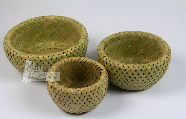 Bamboo weaving boutique double-layer bamboo basket fruit basket fruit plate large medium small three-piece storage basket no paint environmental protection no cover