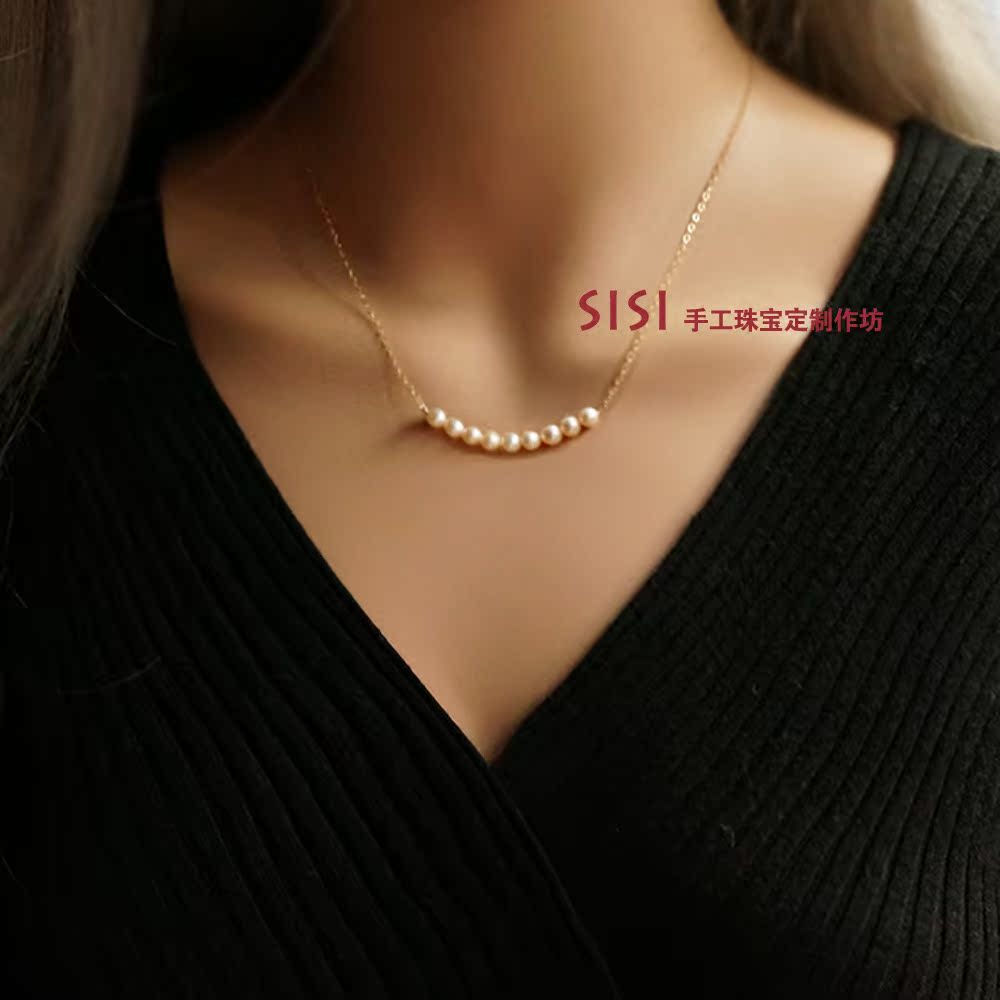 Natural Freshwater Pearl Lock Bone Necklace Sweater Chain Woman Pendant Laughing Face 14K Note Gold Anti-Allergy Not Falling-Taobao