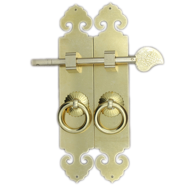 Chinese antique pure copper straight handle Plain surface Ruyi door bar Cabinet bookcase Screen wardrobe pull ring latch handle