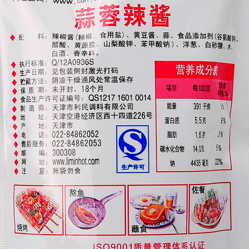 Tianjin Limin garlic chili sauce Garlic chili sauce rice 125g*10 bags of fresh chili sauce Chili sauce Garlic sauce