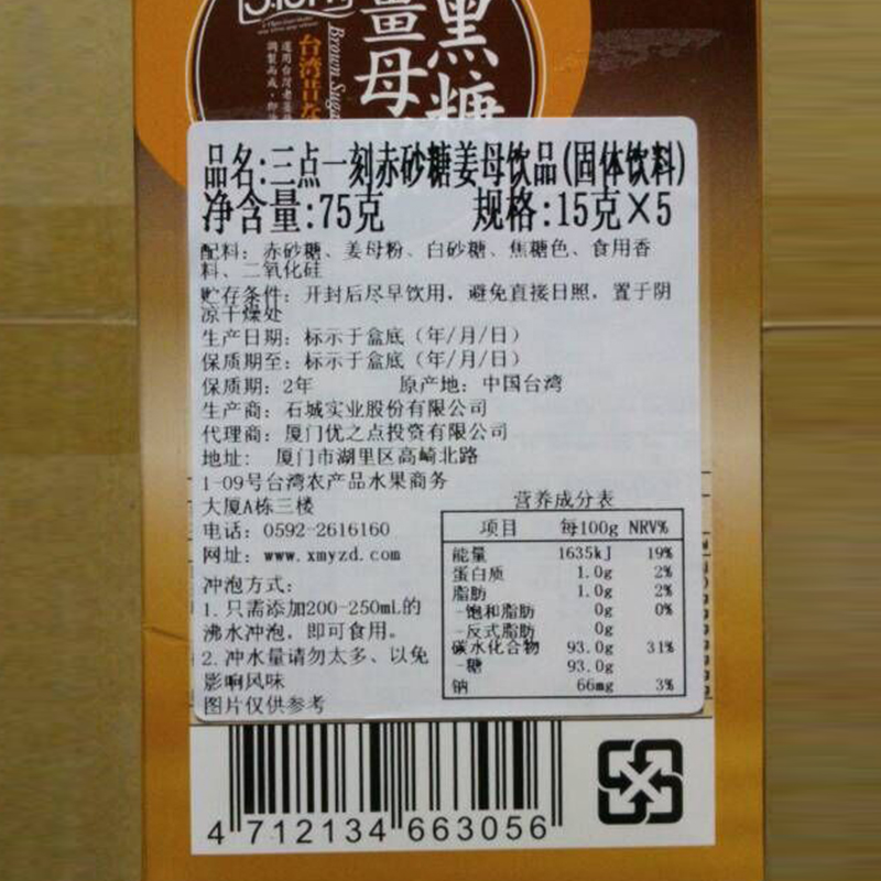 Three-point Moment Black Sugar Ginger Tea Taiwan Imported Red Sugar Ginger Mother Tea Bagged 3:1 Moment Instant Taiwan Black Sugar Ginger Tea