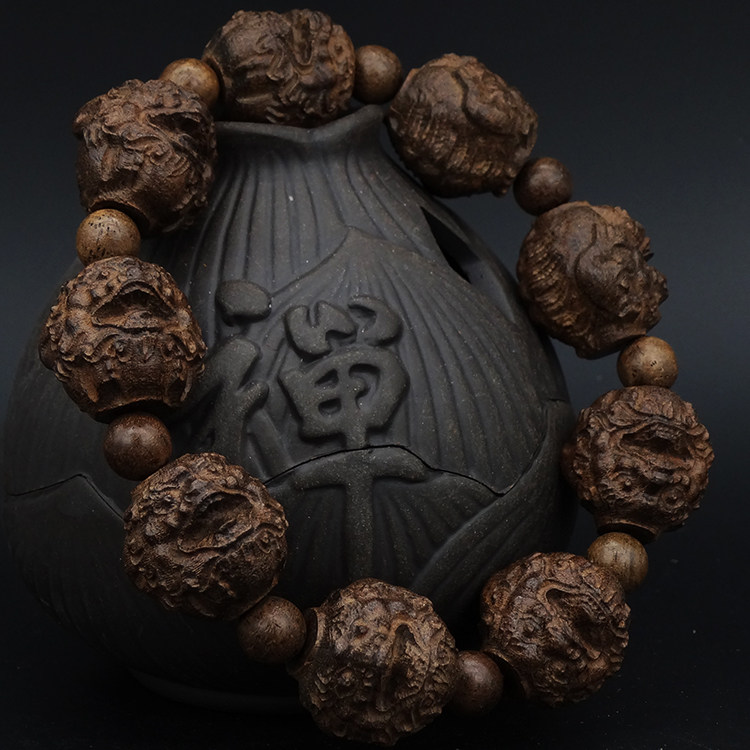 Leather black wood carving Pixiu bracelet 20mm leather black wood carving lotus bracelet 20mm leather black wood carving God of wealth bracelet 20mm leather black wood carving dragon ball bracelet 20mm leather black wood carving walnut hand