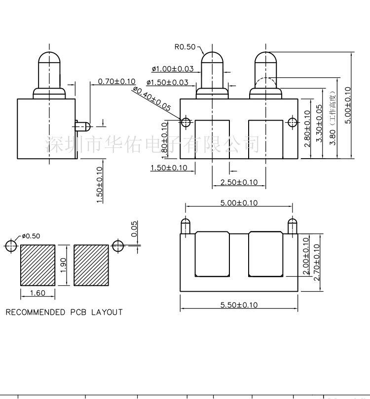 pogopin spring needle custom connector antenna thimble 2P-2 5mm pitch 5 0H conductive needle battery holder