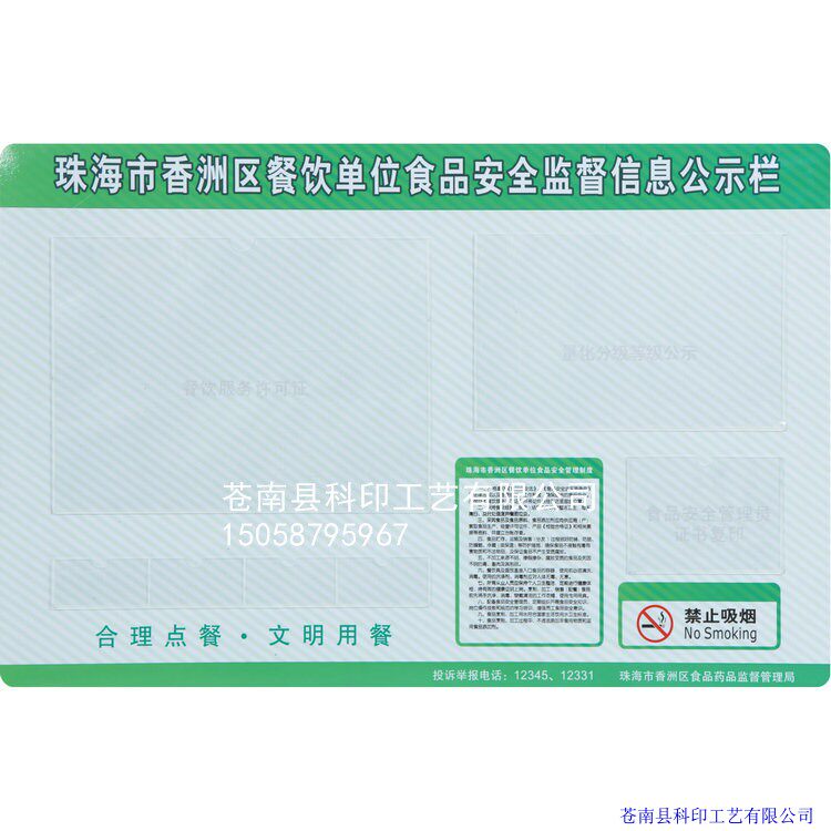 Custom Acrylic Injection Molding Infighting PVC Catering Food Safety Operation Publicity Board Sanitary Information Advertising Exhibition Board