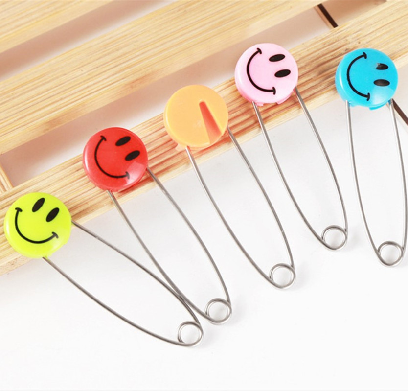 Plastic safety pin smiling face hand knitted red rope kindergarten mother and baby children fixed clothing handmade diy brooch