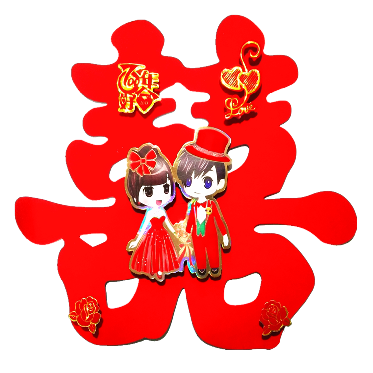 Festive Items Creative Wedding Supplies Love Bi-Joy Solid Door Delight with Festive Joy Character Stickers