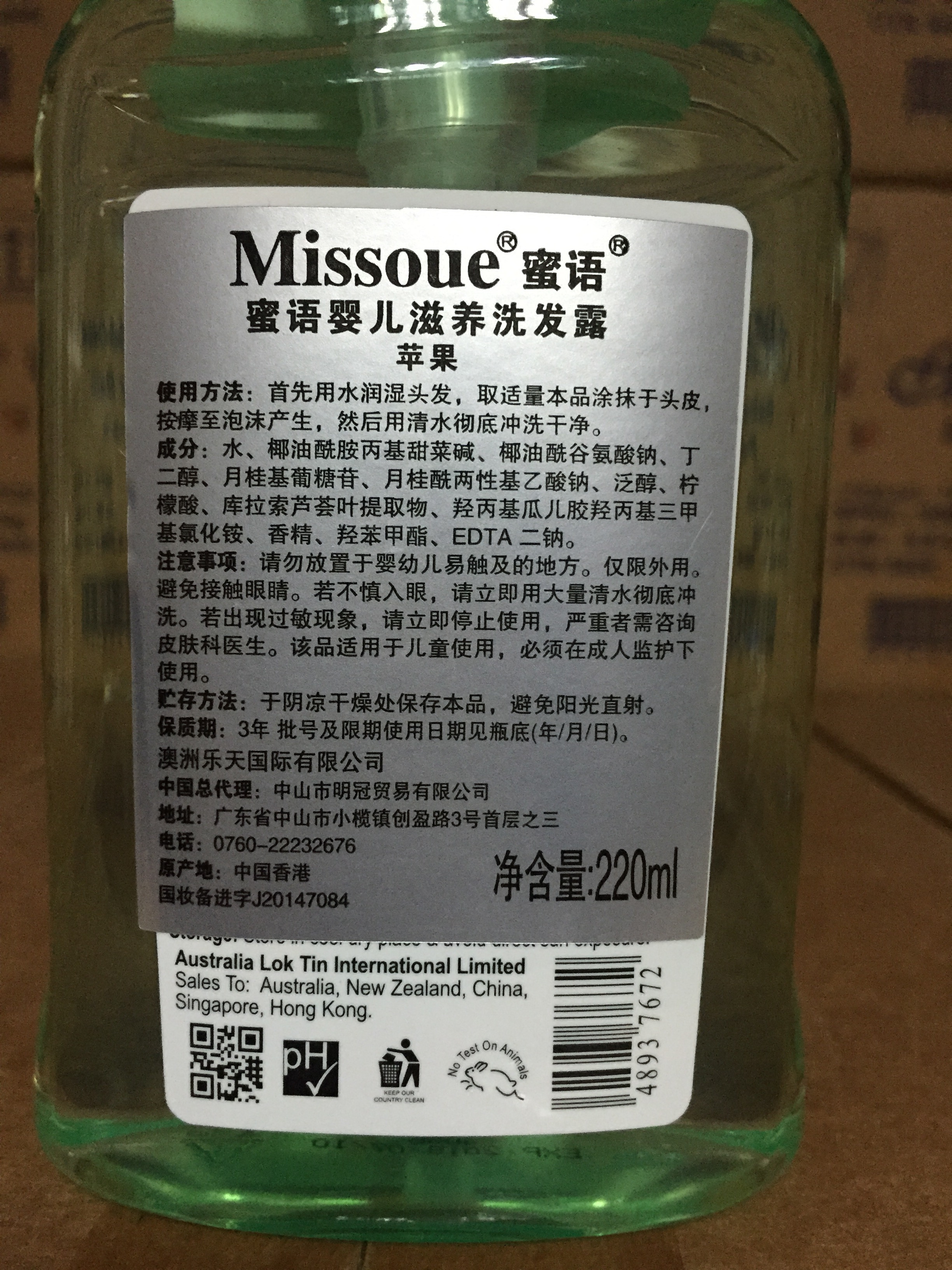 Australian honey language imported baby herbal soft apple-flavored shampoo without tears formula baby 220ml