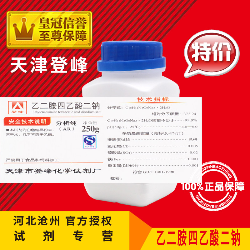EDTA II sodium AR250g QUADROL TETRAACETIC ACID DISODIUM ANALYTICAL PURIFICATION TEST AGENT EXPERIMENTAL SUPPLIES CHEMICAL RAW MATERIALS