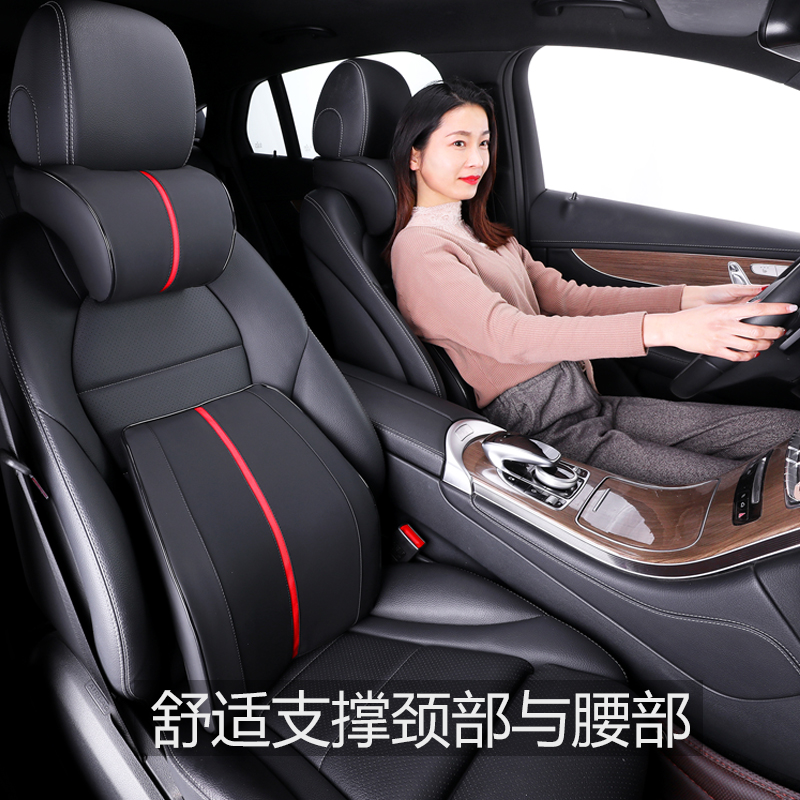 Creative car pillow lumbar comfort memory cotton cervical spine pillow breathable car lumbar microfiber leather car cushion