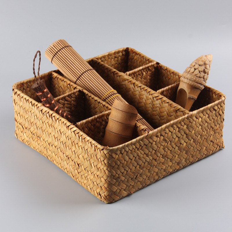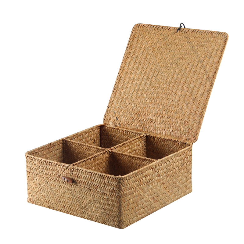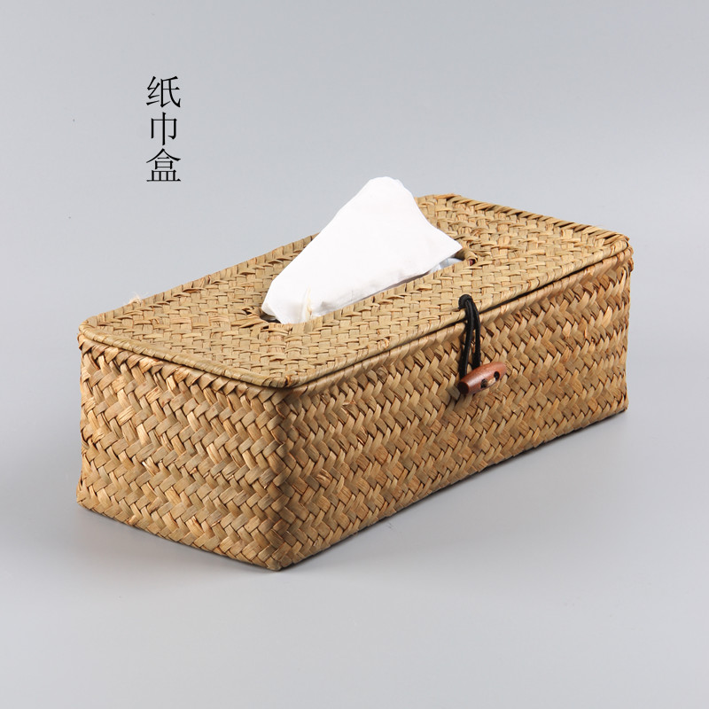 Straw tissue box with lid large four-compartment straw three-grid (33*12 * 11cm) without cover straw seven-compartment (27*27 * 10cm) straw woven large cuboid storage box straw square large